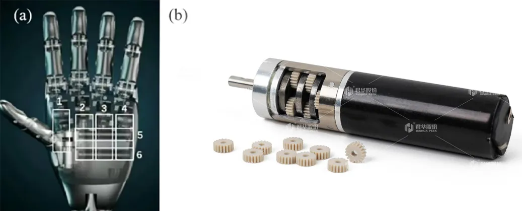La combinación de motores de copa sin núcleo y engranajes de PEEK ofrece un rendimiento de alta velocidad, baja inercia y alta capacidad de respuesta, coincidiendo precisamente con los requisitos de movimiento «rápido y preciso» de las manos diestras. Los engranajes de PEEK están surgiendo como una tecnología clave y una elección de material que impulsa la próxima generación de componentes robóticos de alto rendimiento.